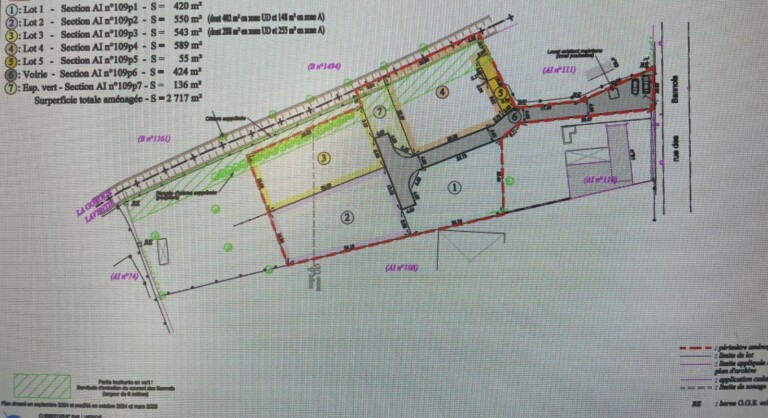 Ensemble de 4 parcelles proposées à la vente: - Lot n°1: Surface de 420 m² au prix de 113 000 EUR honoraires charge vendeur - Lot n°2: Surface de 550 m² (dont 402 m² en zone UD et 148 m² en zone A) au prix de 123 000 EUR honoraires charge vendeur - Lot n°3: Surface de 543 m² (dont 288 m² en zone UD et 255 m² en zone A) au prix de 122 000 EUR honoraires charge vendeur - Lot n°4: Surface de 589 m² au prix de 119 000 EEUR honoraires charge vendeur Terrains libres de constructeur et viabilisés en eau, électricité et assainissement Secteur calme et agréable proche du centre village.